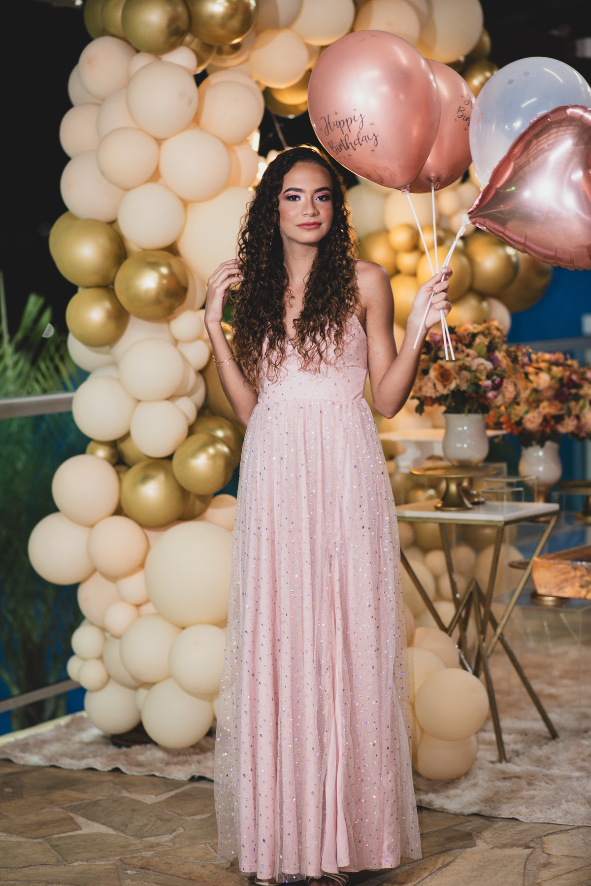 A Mariana resolveu fazer diferente para seu aniversário de 15 anos ao invés de comemorar nos tradicionais buffets, alugou um sitio e foi celebrar junto com os amigos. Cheguei mais cedo que o evento para fazermos umas fotos no pôr-do-sol, quase não deu tempo, foi um daqueles dias que o sol se pôs mais rápido, o ensaio durou 30 minutos, mas se eu não contasse, ninguém saberia, tamanha beleza das fotos! Ensaio feito bora celebrar, a decoração estava linda repleta de balões e led. Aproveitamos para fazer algumas fotos antes dos convidados chegarem. Confira um pouco deste evento!