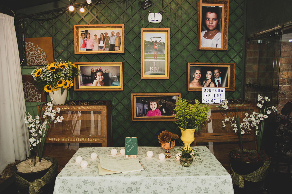 A Família da Bella resolveu fazer uma surpresa para ela reunindo parentes e amigos, para um jantar intimista, em comemoração à sua formatura no curso de medicina. Foram momentos de suspense até sua chegada no local, e depois de muitos abraços e sorrisos, uma bela homenagem de seus pais para ela emocionando a todos no evento.