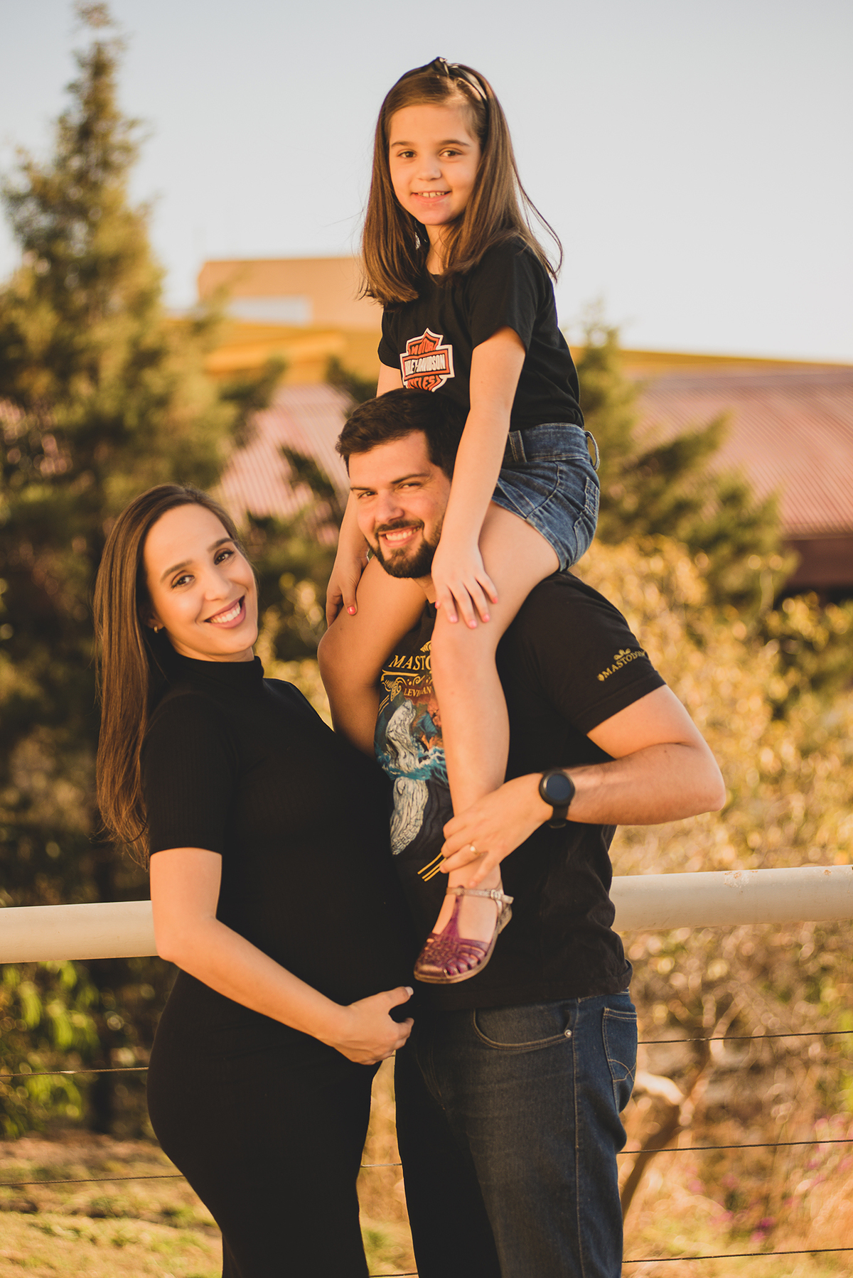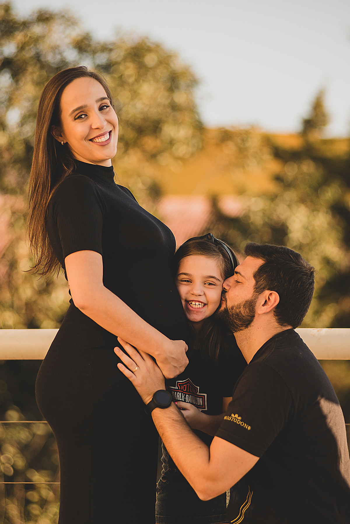 Ensaio Gestante Fumec Mirante Por-do-sol Família Rock Pretinho básico Grávida